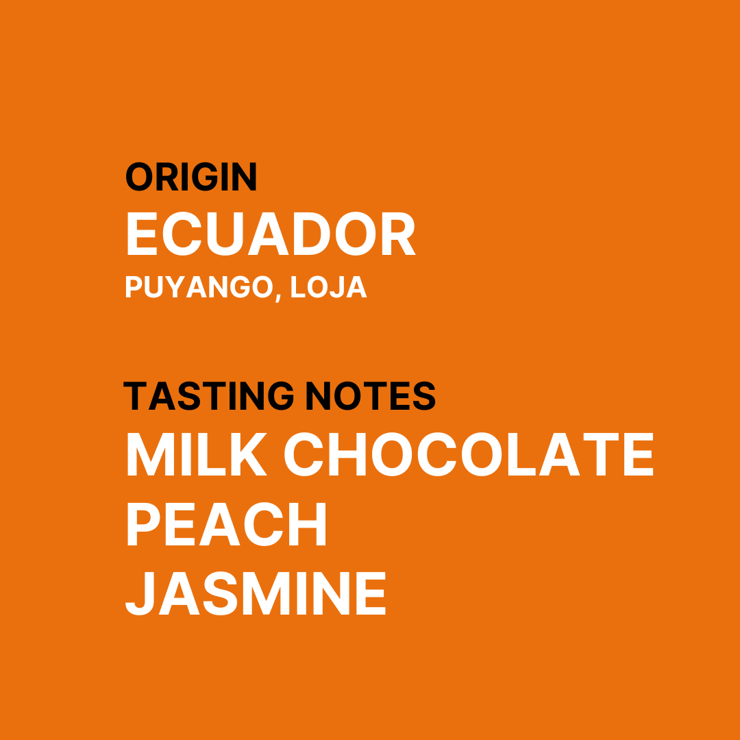 Sourced from the highlands of Loja in southern Ecuador, Mitad Del Mundo is a washed-process blend of Caturra, Typica, and Bourbon varieties grown by dedicated smallholders. This elegant coffee is beautifully balanced, offering creamy milk chocolate and juicy peach notes, delicately lifted by hints of jasmine. Smooth, refined, and vibrant - a delicious coffee.